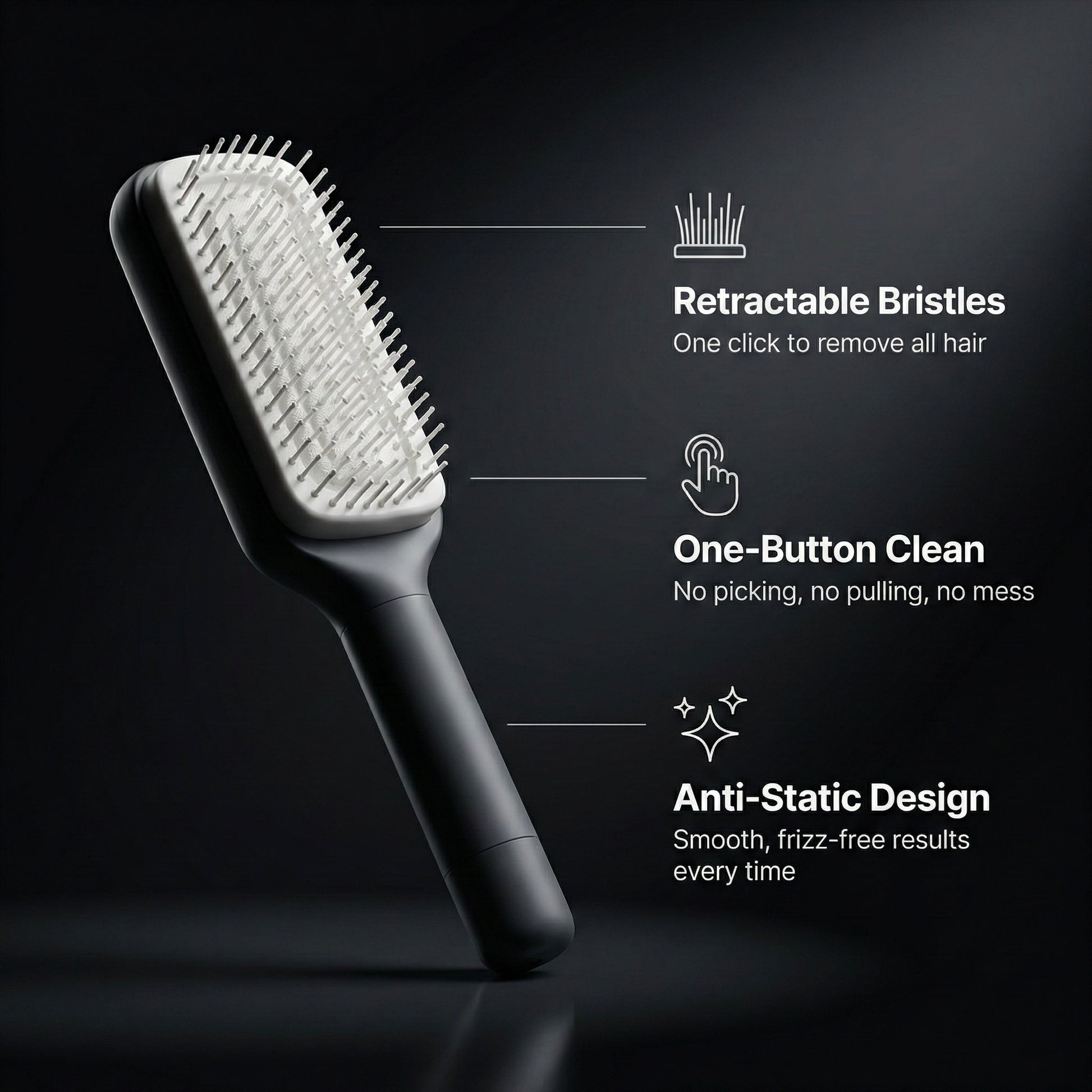 Say goodbye to painful brushing and hair stuck in your brush. The PureBristle™ Self-Cleaning Brush gently detangles knots in seconds while reducing breakage and frizz. With one simple rotation, trapped hair releases instantly so your brush stays clean and ready to use. Perfect for busy mornings, post-shower routines, or quick touch-ups on the go. Smooth, shiny hair without the struggle.